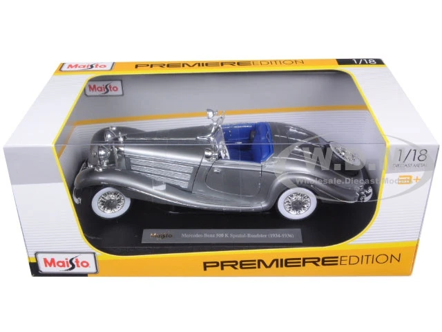 - Brand new 1:18 scale diecast model of 1936 Mercedes 500K Roadster Grey die cast model car by Maisto.