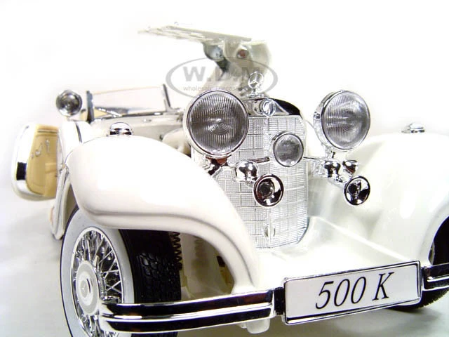 - Brand new 1/18 scale diecast car model of 1936 Mercedes Benz 500 K Special Roadster White die cast model car by Maisto.