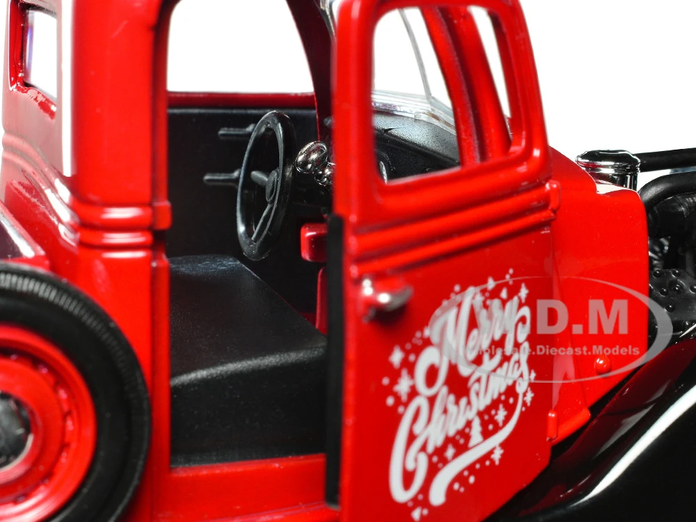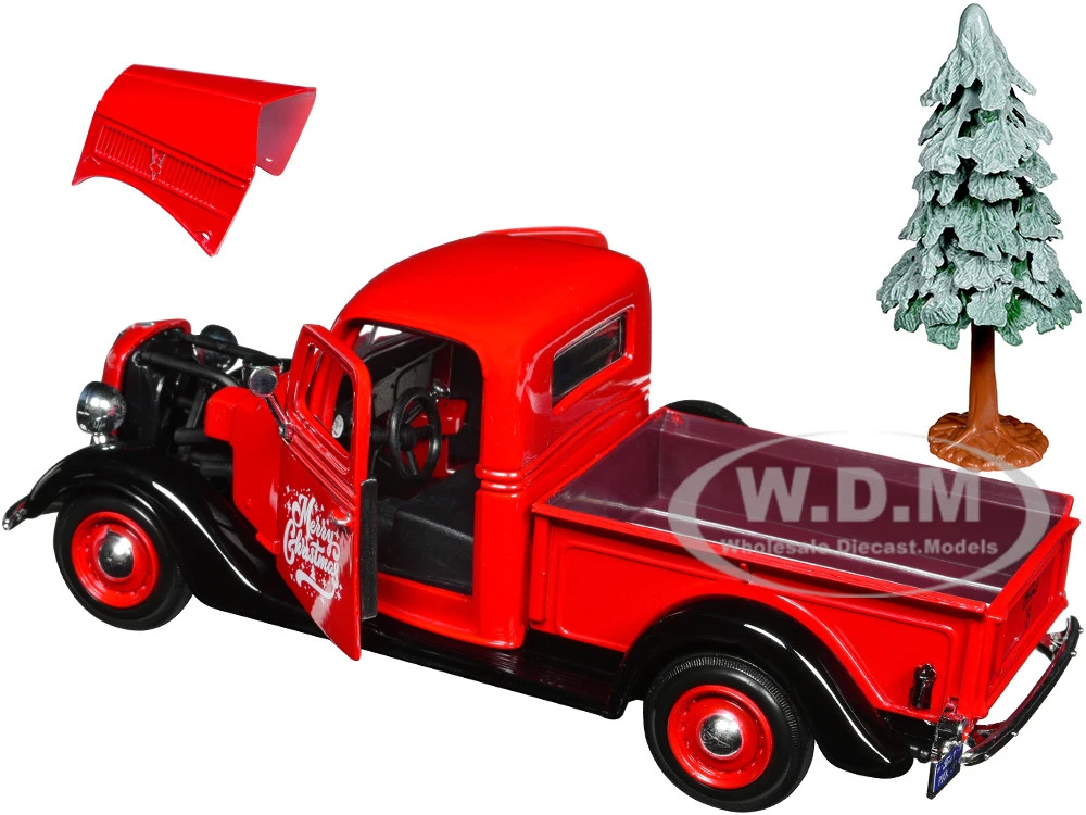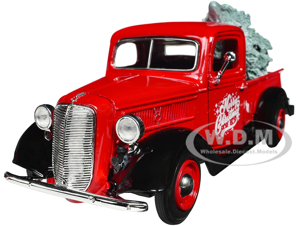 - Brand new 1/24 scale diecast car model of 1937 Ford Pickup Truck Red and Black “Merry Christmas” with Tree Accessory die cast model car by Motormax.