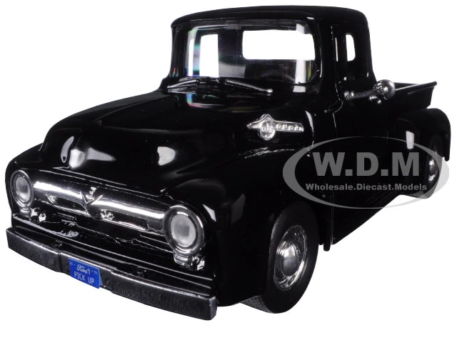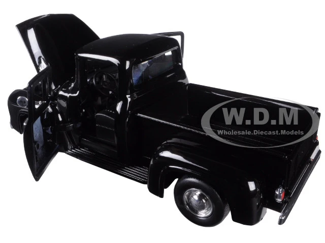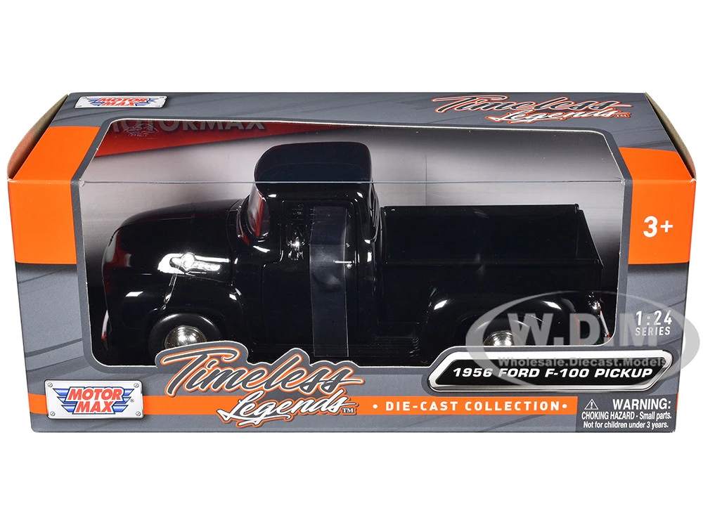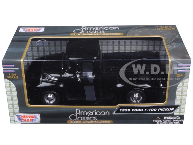 - Brand new 1:24 scale diecast car model of 1956 Ford F-100 Pickup Truck Black by Motormax.