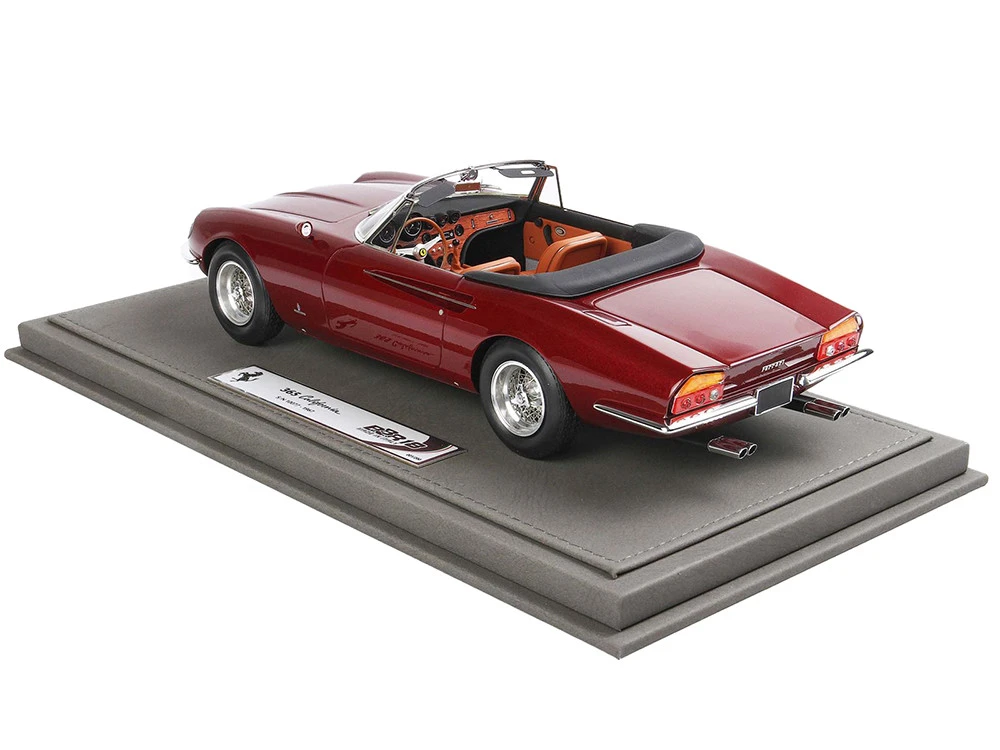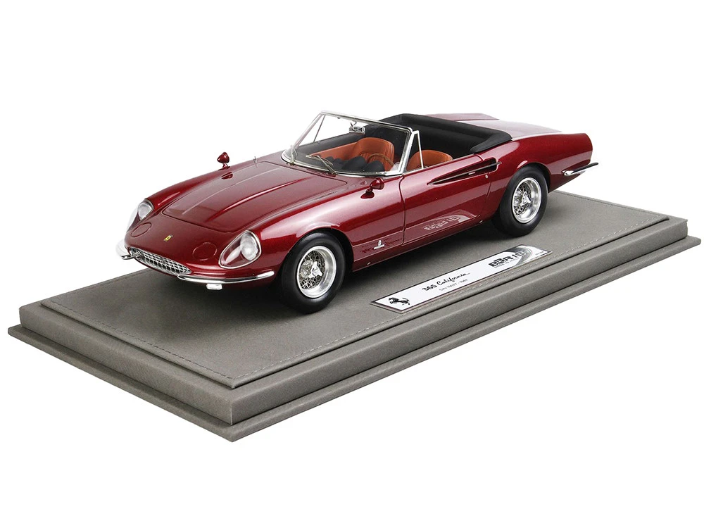 - Brand new 1/18 scale car model of 1966 Ferrari 365 California S/N 10077 Convertible Rosso Rubino Red Metallic with DISPLAY CASE Limited Edition to 200 pieces Worldwide model car by BBR Models.