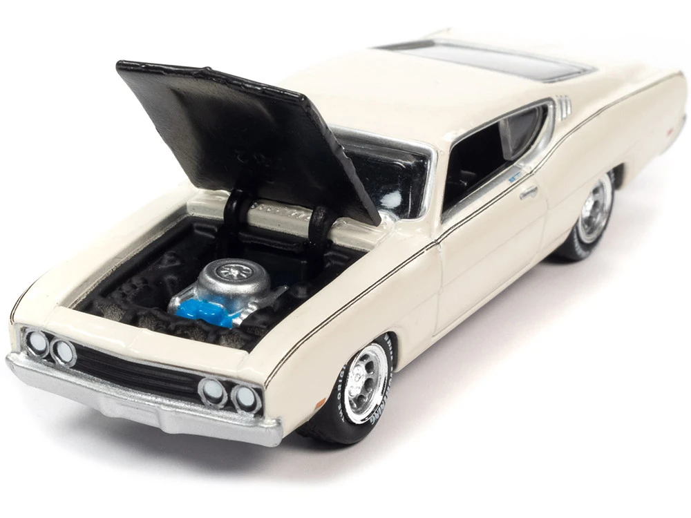 - Brand new 1/64 scale diecast car model of 1969 Ford Torino Talladega Wimbledon White with Matt Black Hood “Classic Gold Collection” Series Limited Edition to 10548 pieces Worldwide die cast model car by Johnny Lightning.