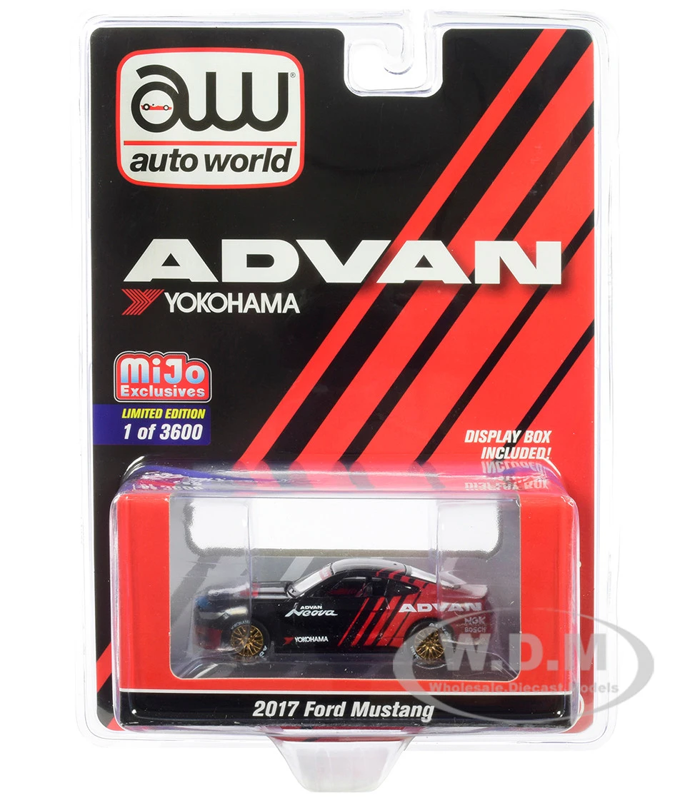 - Brand new 1/64 scale diecast car model of 2017 Ford Mustang “ADVAN Yokohama” Red and Black Limited Edition to 3,600 pieces Worldwide die cast model car by Auto World.