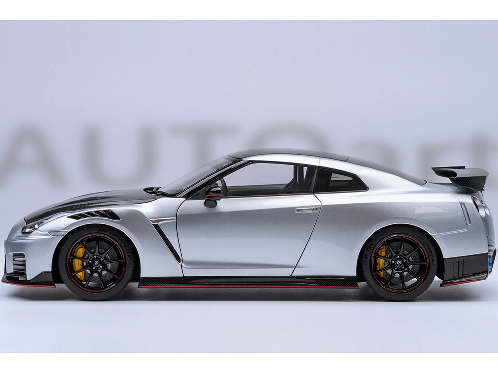 - Brand new 1/18 scale car model of 2022 Nissan GT-R (R35) Nismo Special Edition RHD (Right Hand Drive) Ultimate Metal Silver with Carbon Hood and Top model car by Autoart.