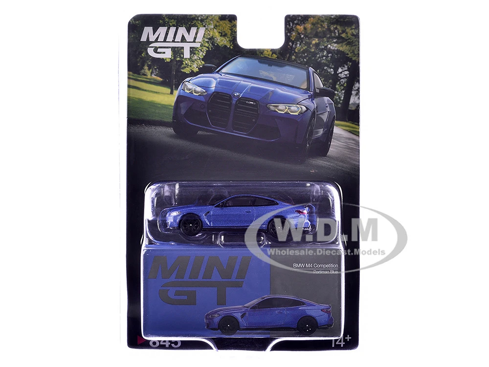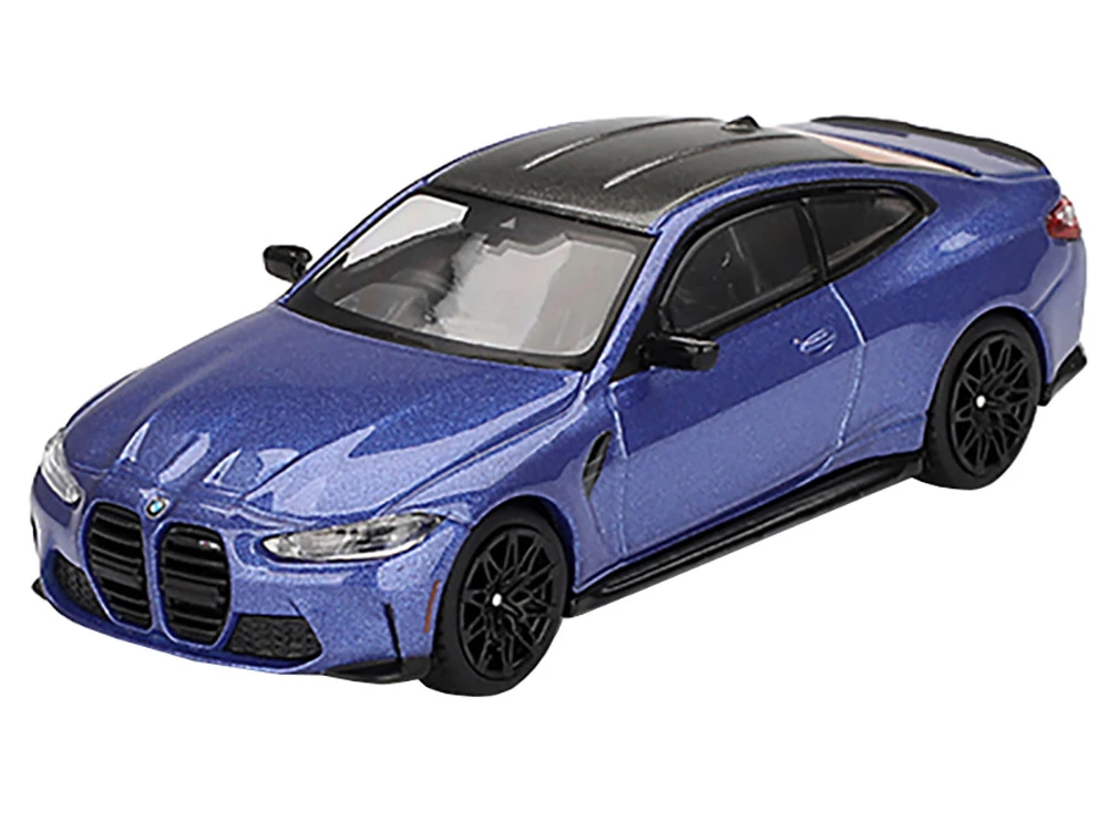- Brand new 1/64 scale diecast car model of BMW M4 Competition Portimao Blue Metallic with Carbon Top Limited Edition die cast model car by Mini GT.