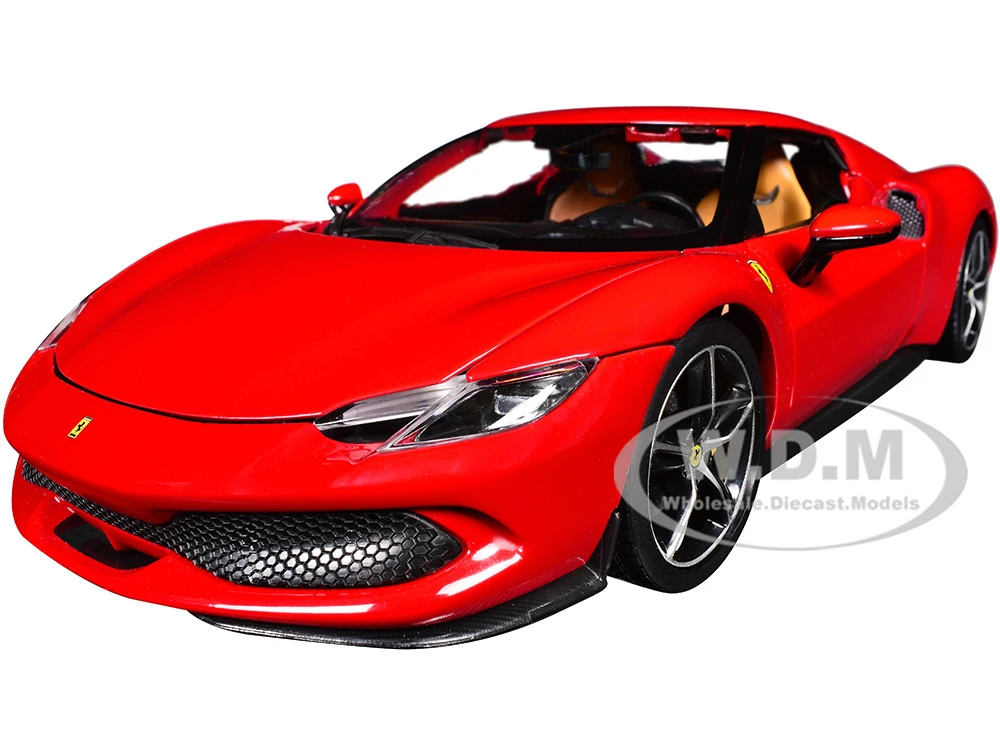 - Brand new 1/18 scale diecast car model of Ferrari 296 GTB Red “Race + Play” Series die cast model car by Bburago.