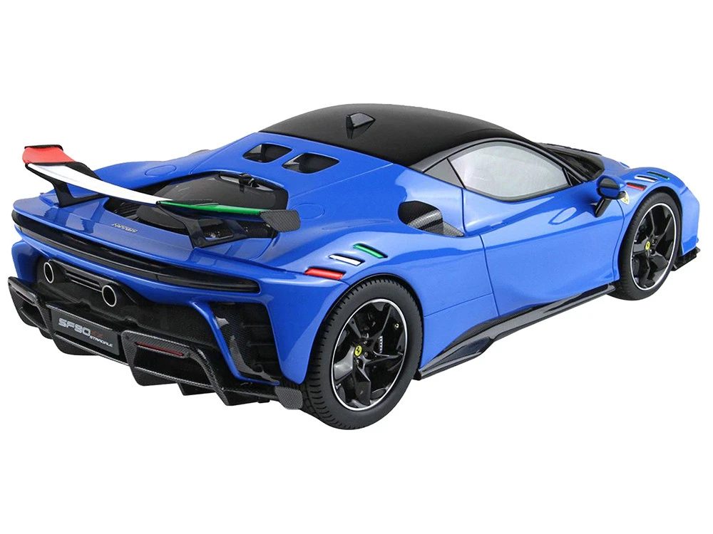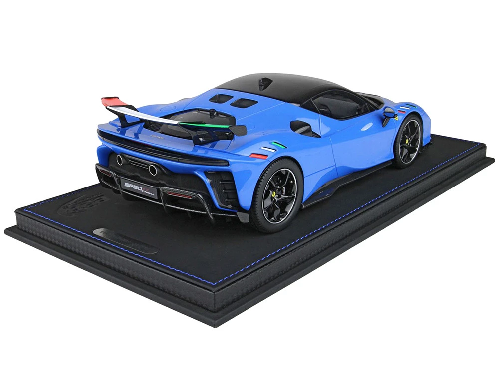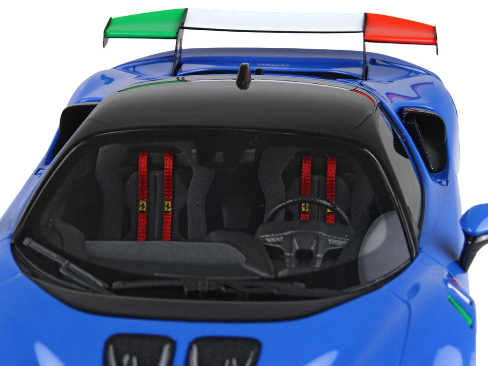 This model 1/18 scale of SF90XX celebrates the Italian tricolor and the light blue. Paradoxically, among the official Ferrari colors, the France Blue is the one that comes closest color to the italian teams t-shirts.
