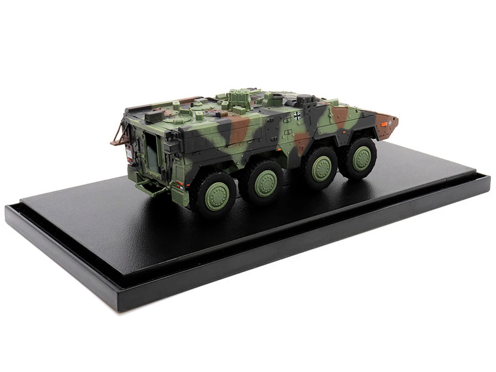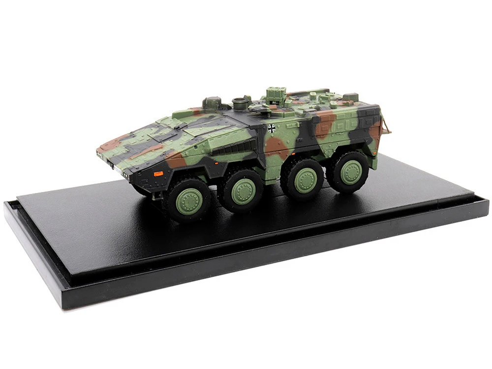 The German Boxer MRAV (Multi-Role Armoured Vehicle) A2 is a state-of-the-art armored vehicle designed and manufactured in Germany. It was introduced in 2014 and is in service with the German Army. The Boxer has a modular design that allows it to be configured for a range of roles, including troop transport, command and control, ambulance, and more.ย The Boxer MRAV A2 saw action in various conflict zones, including Afghanistan, where it was deployed as part of the International Security Assistance Force (ISAF). It was also used in Mali as part of the United Nations Multidimensional Integrated Stabilization Mission in Mali (MINUSMA).ย The 1/72 scale model of the Boxer MRAV A2 in tri-color camouflage accurately captures the vehicle’s sleek and modern design. The model features finely detailed parts, including the suspension system, gun turret, and machine gun. It is an excellent addition to any collection of military models.ย Whether you are a collector, a hobbyist, or just appreciate the engineering and design that goes into military vehicles, the German Boxer MRAV A2 is a must-have. Get yours today and add a piece of modern military history to your collection.