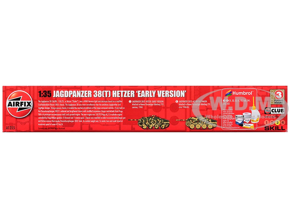 - Brand new plastic model kit of JagdPanzer 38(t) Hetzer “Early Version” Tank with 2 Scheme Options (Level 3) 1/35 plastic model kit by Airfix.