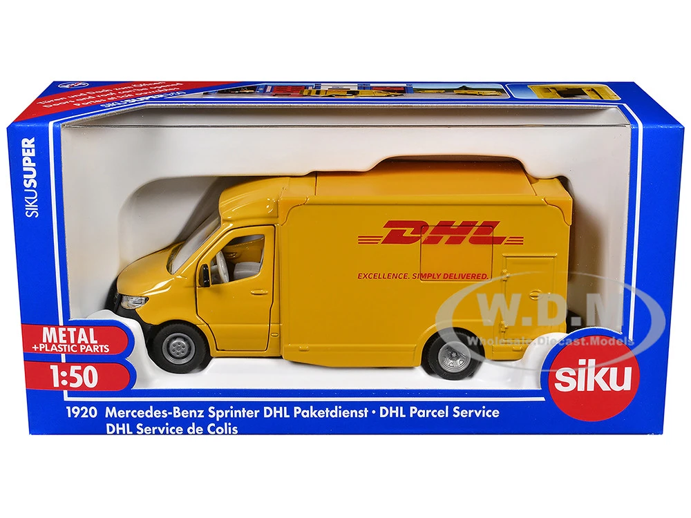 - Brand new 1/50 scale diecast car model of Mercedes-Benz Sprinter Van Yellow “DHL” die cast model car by Siku.