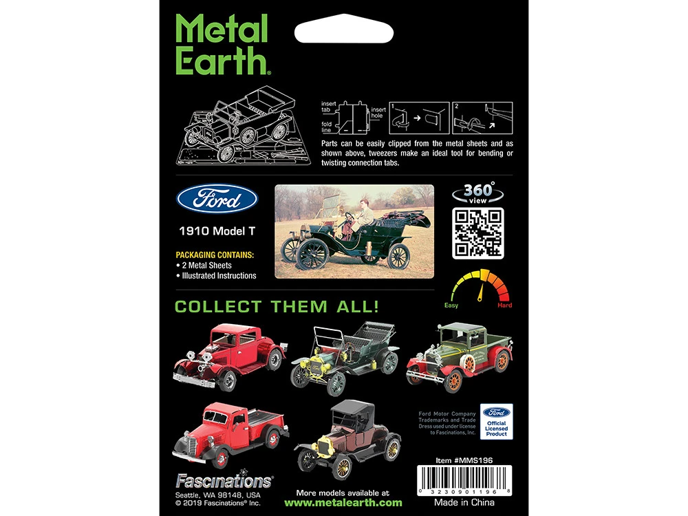 - Brand new 1910 Ford Model T Green (Moderate Difficulty) Steel Model Kit by Metal Earth.