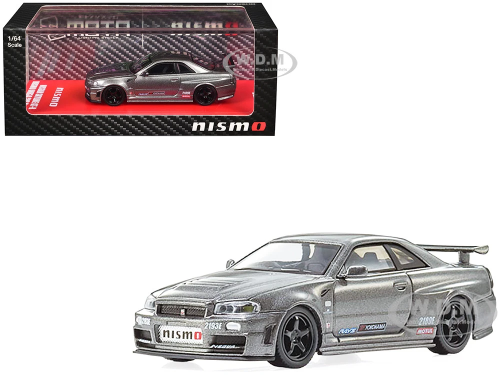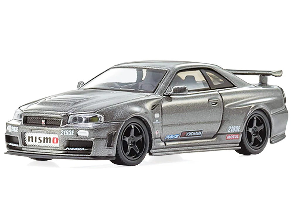 - Brand new 1/64 scale diecast car model of Nissan Skyline GT-R Nismo (BNR34) RHD (Right Hand Drive) Gray Metallic die cast model car by Kyosho.