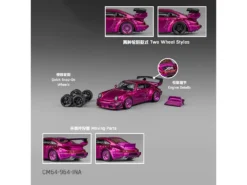 Porsche 964 Widebody Hot Pink Metallic With Extra Wheels And Wing 1/64 Diecast Model Car By CM Model