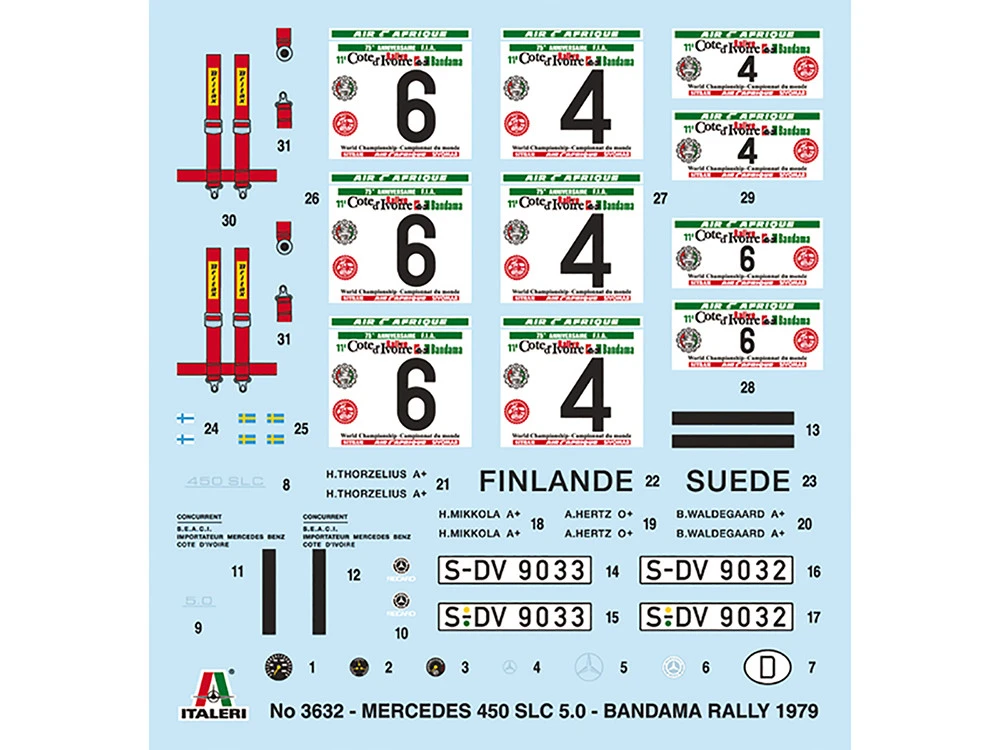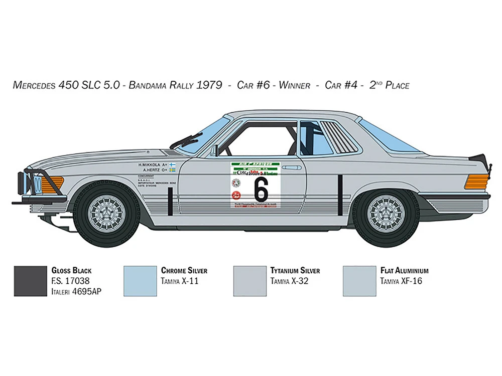 - Brand new 1/24 scale plastic model kit of Mercedes-Benz 450 SLC Winner “Rallye Bandama Ivory Coast” (1979) (Skill 3) 1/24 plastic model kit by Italeri.